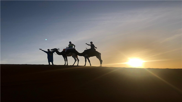 The Moroccan culture and history are mesmerizing. Our delegation had the once in a lifetime experience of going on a sunset camel ride in the middle of the Sahara Desert. Words cannot adequately express the peace and serenity that I experienced on that camel ride. There was no cell service. There were no directional signs showing where we were and, for the first time in my life, I actually had no idea where I was other than simply the Sahara Desert. Riding these tall majestic animals was one of the most calming experiences of my life. There is no graceful way to get on a camel and there is no saddle or other means to secure the rider atop these single-hump dromedaries.  At first, I held on for dear life, but soon became accustomed to the lumbering and lopsided way that a camel walks in the desert and my camel and I bonded. After riding for about an hour across dunes of reddish Sahara Desert sand, we got off of our camels and quietly watched the sunset. You could almost touch the sun and there was no sound except the serenity of our world. Riding the camels back to our originating point in the twilight was equally peaceful and, as I slid off my camel and saw the stars in the empty Moroccan sky, I knew I had just had an experience that would forever remain with me.